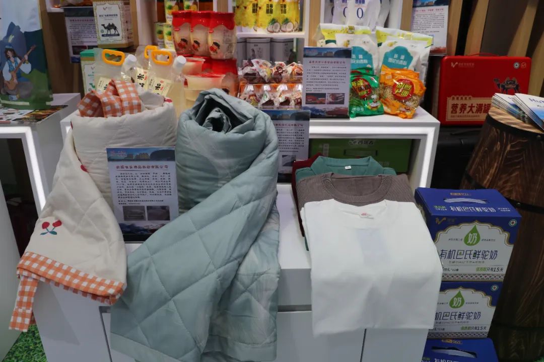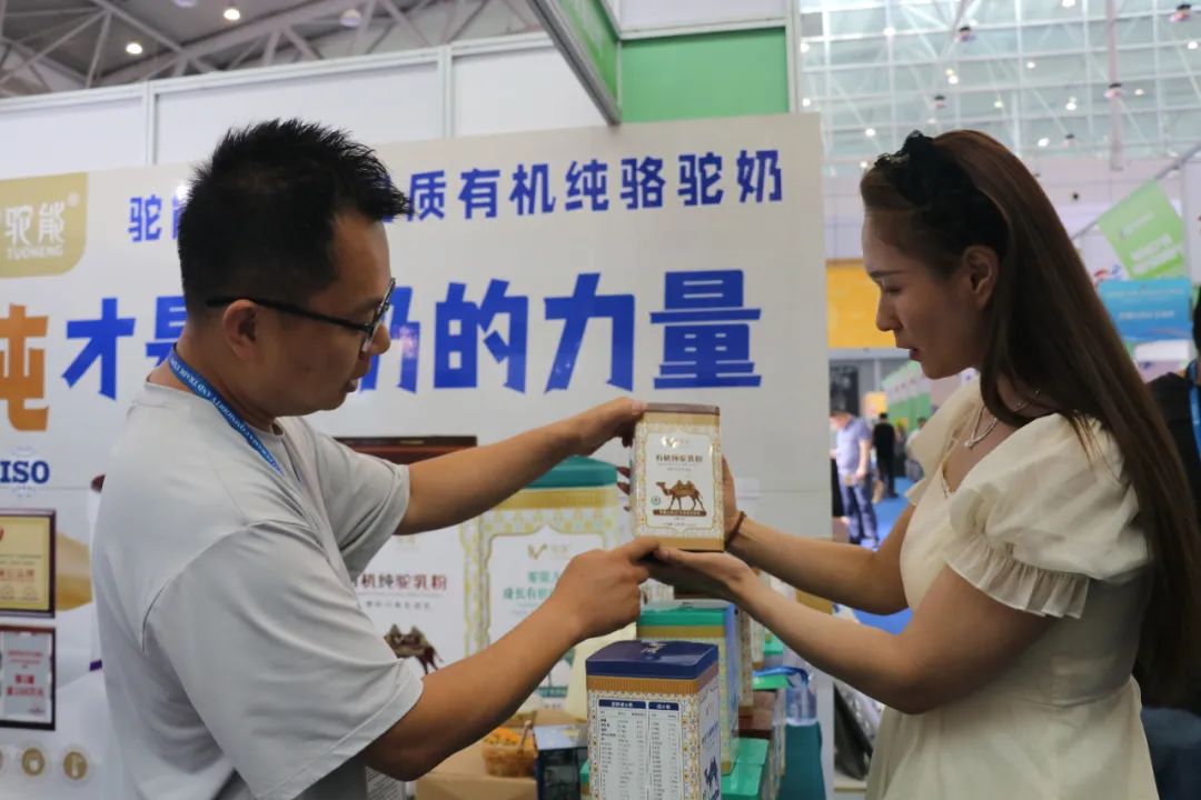 在昌吉州展位上西域春酸奶、有機(jī)巴氏鮮駝奶米酒、腐竹等特色產(chǎn)品吸引不少客商前來(lái)咨詢